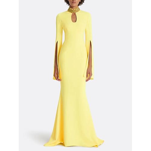 Sirena Tromba Lunghezza al pavimento Abiti da Ballo Abito da Sera Abiti da festa Da principessa Elegante Manica Lunga Girocollo Balli di fine anno Festa serale Raso con Ricamo