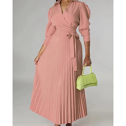 Damen Midikleid Satinkleid Partykleid Cocktailkleid Unterkleid Elegant Modern Outdoor Abendgesellschaft Party Normale Passform Einfach Langarm Hemdkragen Erröten Sie Rosa Schwarz Rosa Rote Herbst