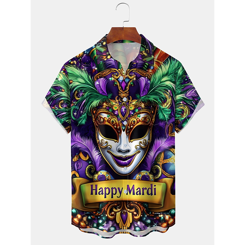 Men's Mask Short Sleeves Artistic Casual Comfortable Outdoor Vacation Street Spring Summer Shirt Collar Printing Black