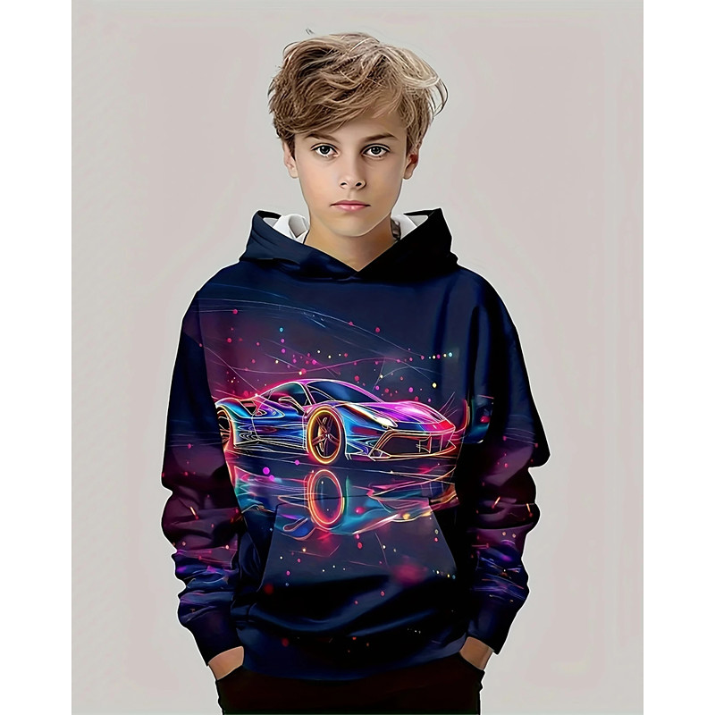 Boys' 3D Car Hoodie Long Sleeve Spring Fall Fashion Streetwear Kids 4-12 Years Hooded Outdoor Casual Daily Regular Fit