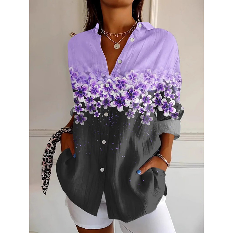 Women's Shirt Floral Active Daily Stylish Long Sleeve Shirt Collar Regular Tops Daily Holiday Buttons Print Purple Spring Fall