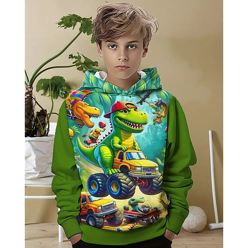 Boys' 3D Dinosaur Hoodie Long Sleeve Spring Fall Fashion Streetwear Kids 4-12 Years Hooded Outdoor Casual Daily Regular Fit