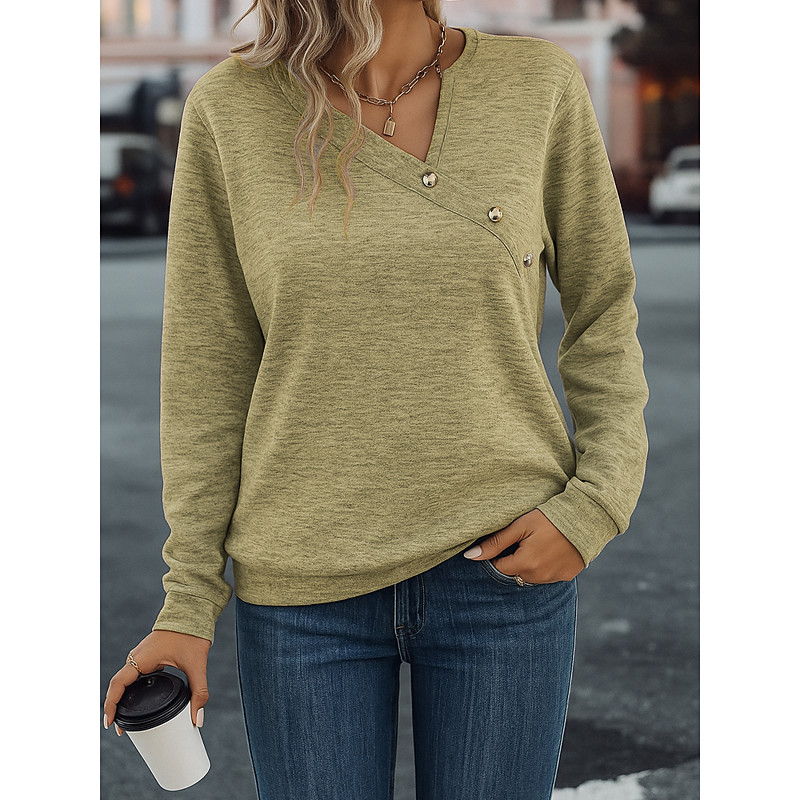 Women's Blouse Casual Long Sleeve V Neck Regular Tops Yellow Dusty Rose Blue Light Grey Spring Fall