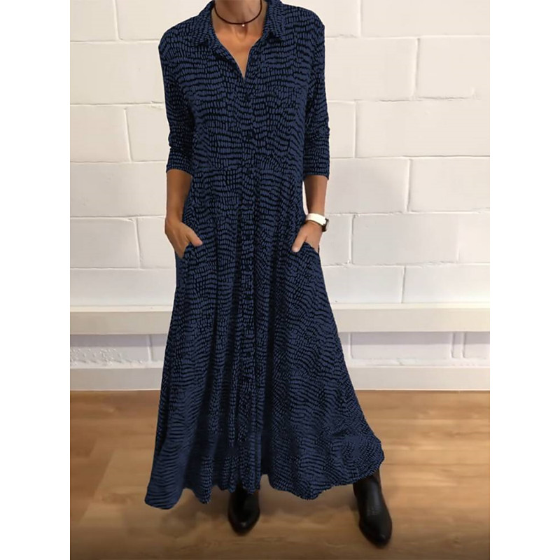 Women's Maxi Dress A Line Dress Casual Daily Loose Fit Striped Long Sleeve Lapel Blue Black Red Spring Fall