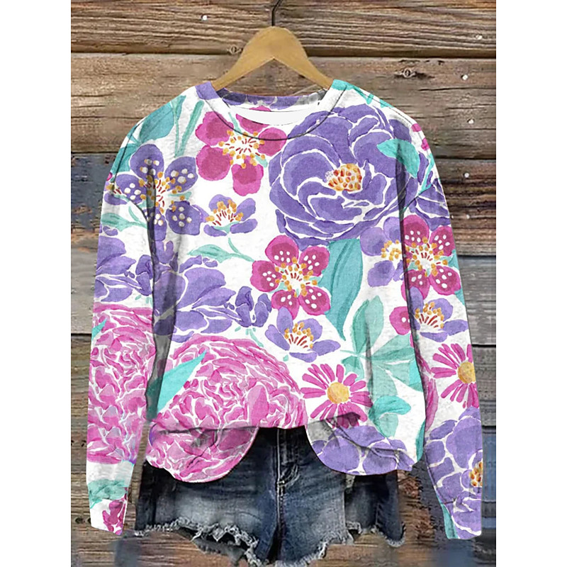 Women's Pullover Sweatshirt Floral Graphic Casual Long Sleeve Crew Neck Regular Tops Casual Street Dailywear Pink Purple Green Spring Winter