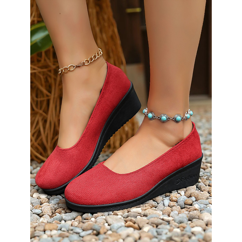 Women's Red Low Wedge Slip-On Shoes – Lightweight Comfort Shoes for Patio Parties, Garden Gatherings and Everyday Style