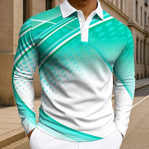 Per uomo Geometrico Linea Polo Manica Lunga Magliette polo Bavero Business Casual Athleisure Abbigliamento quotidiano Stampa 3D Bottoni Primavera Autunno Inverno azzurro cielo Rosa scuro Blu