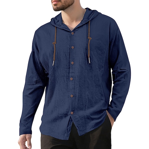 Per uomo Camicia Camicia di lino Camicia Estiva Camicia da Spiaggia Semplice Vacanza Casuale Nero Bianco Blu marino Cachi Manica Lunga Con Cappuccio Primavera Autunno Abbigliamento Coulisse