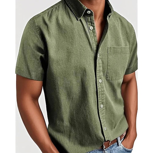 Per uomo Camicia Camicia Estiva Camicia casual Camicia da Spiaggia Camicia con Bottoni Nero Bianco Rosa Rosso Blu marino Manica Corta Tinta unica Bavero Vacanza Casuale Tasca Abbigliamento Moda