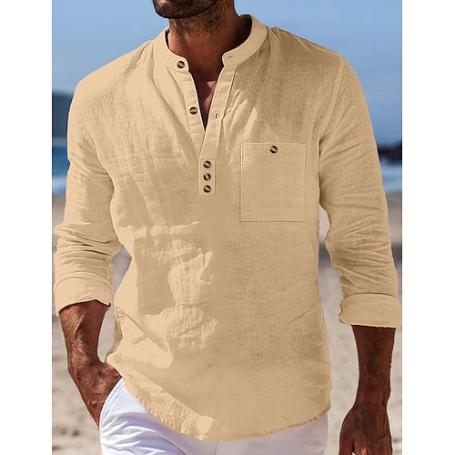 Per uomo Camicia Camicia di lino Camicia popover Camicia Estiva Abbigliamento da spiaggia Semplice Vacanza Casual Giallo Chiaro Nero Bianco Blu marino Manica Lunga Henley Estate Primavera