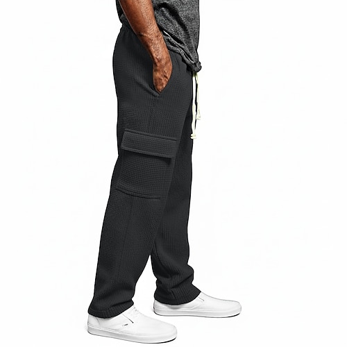 Herren Waffel Cargo-Hosen Cargo-Jogginghose Hose Gerade geschnittene Sweatpants Kordelzug Elastischer Bund Mehrere Taschen Einfach Feuchtigkeitsableitend Atmungsaktiv Volle Länge Sport im Freien