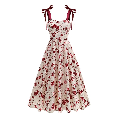 Elegante Classico Anni 1950 Midi Abito a Linea Abito Swing Vestito Svasato Senza maniche Linea ad A Costume Per donna Carnevale San Valentino Mascherata Vacanza Abbigliamento Quotidiano Addio al