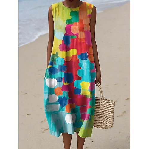 Per donna Abito Midi Abito a Tubino Vacanza Casual Spiaggia Uscire Vestibilità comoda Grafico Geometrico Senza Maniche Girocollo Blu Rosso Viola Verde Estate Primavera
