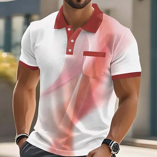 Herren Geometrisch Linie Polo Kurzarm Polo-Shirts Hemden mit Kragen Lässig Business-Casual Schule Outdoor Sport Alltagskleidung 3D-Druck Sommer Schwarz Rote Blau