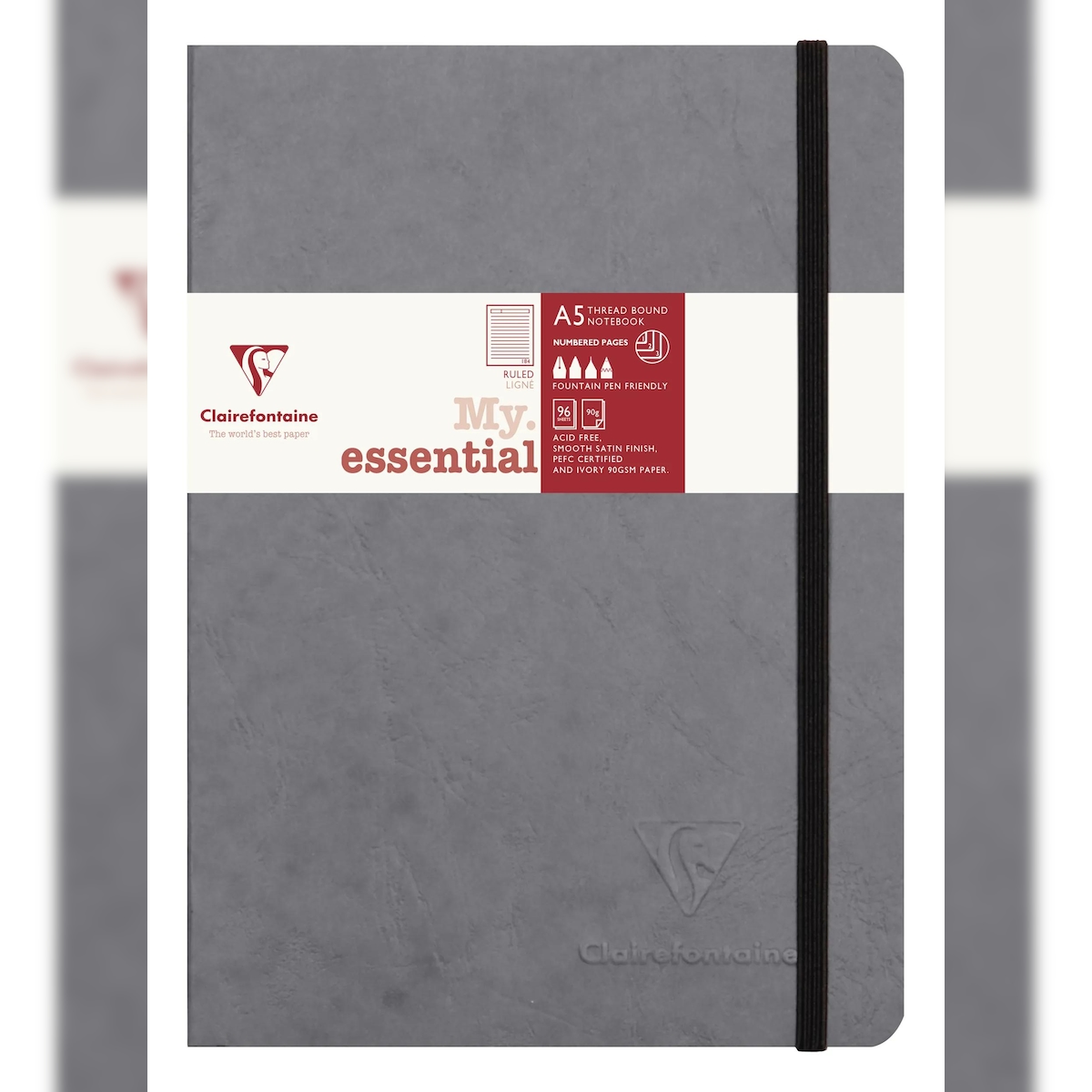 Clairefontaine 5x Notizbuch Age Bag My.essential A5 96 Blatt liniert - Grau 793465C