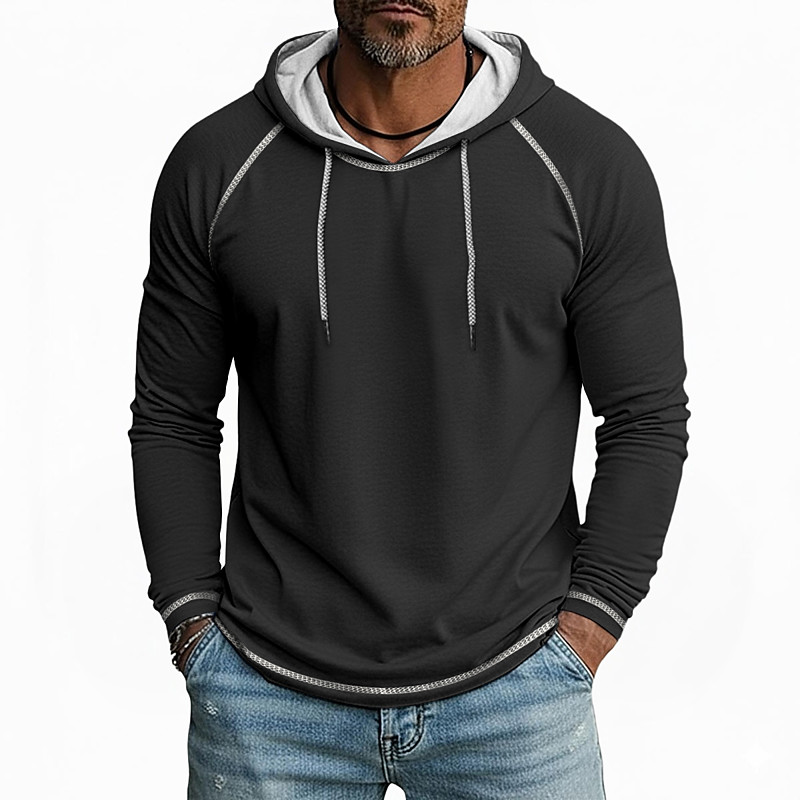 Men's T Shirt Hoodie Long Sleeve Hooded Winter Spring Fall All Seasons Solid Color Knitwear Daily Sporty Hooded Outdoor Causal Casual Light Blue Black Wine Top Tee for Men