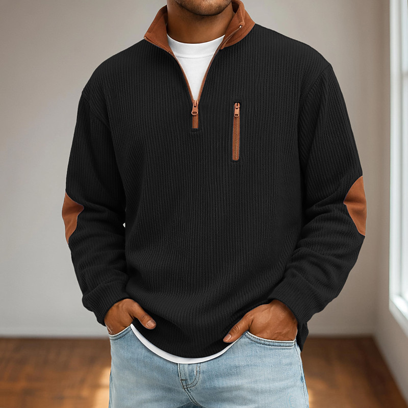 Men's Corduroy Shirt Tee Top Long Sleeve Shirt Long Sleeve Zip Fall Winter Fall Winter Color Block Daily Textured Casual Zip Up Oversized Loose Casual Outdoor Street Black Light Green Dark Blue Top