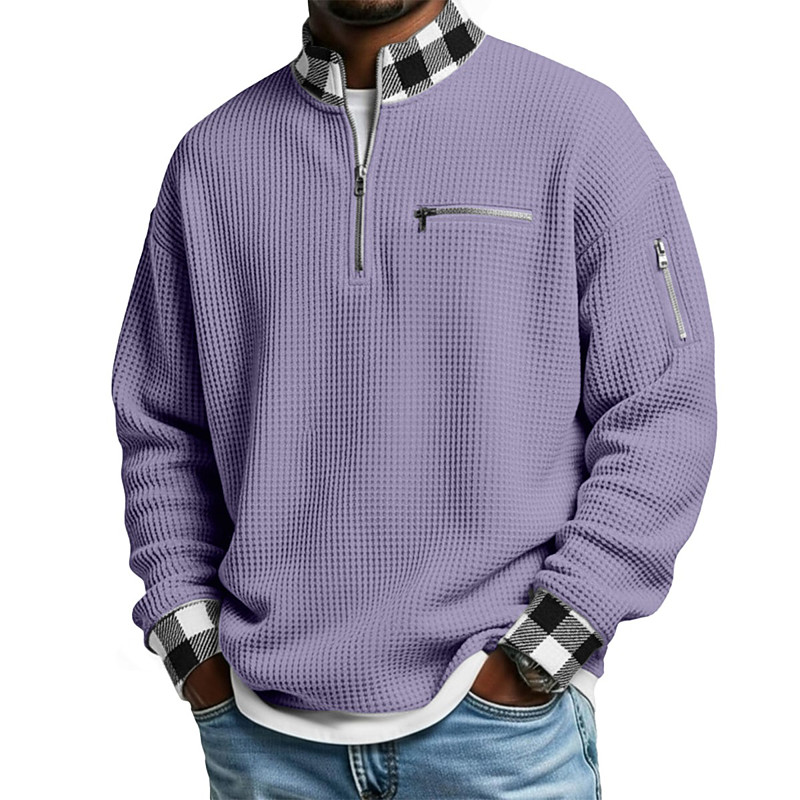 Men's Waffle T-shirt T Shirt Long Sleeve Half Zip Fall Winter Solid Color Traditional / Vintage Casual Check Pattern Color Block Zipper Pocket Casual Home Outdoor Light Blue Light Green Red Top Tee
