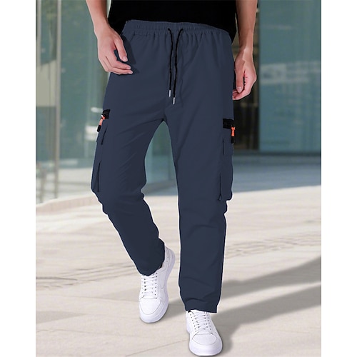 Per uomo Pantaloni Cargo Coulisse Elastico in vita Multi-tasche Semplice Indossabile Quotidiano All'aperto Campeggio Escursionismo Moda Classico azzurro cielo Nero