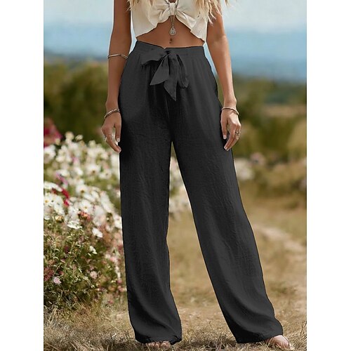 Per donna 100% cotone Gamba larga Pantaloni Streetwear Casual Lungo Vita Alta Semplice Tasca Taglio alto Traspirabilità Morbido Micro-elastico Vacanza Streetwear Abbigliamento quotidiano Nero Bianco