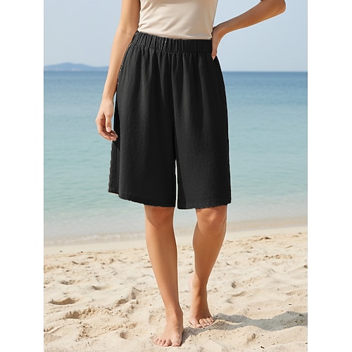 Per donna Shorts Semi-lungo Shorts da Spiaggia Vacanza Essenziale Casual Lunghezza al ginocchio Vita media Semplice Elastico in vita Comodità Traspirante Inelastico Quotidiano All'aperto Vacanza Nero
