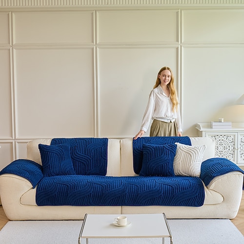 1 pezzo di copridivano elastico invernale in tinta unita, in morbido peluche, stile moderno e minimalista, universale, antiscivolo, adatto per divani a L e divani a 1/2/3/4 posti