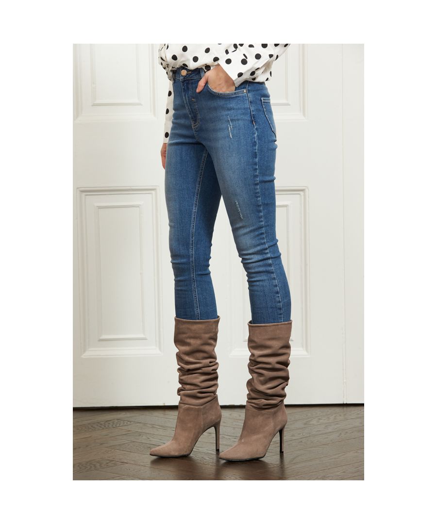 Sosandar Womens Belle Taupe Suede Heeled Slouch High Leg Boot Leather - Size UK 6 | Sosandar Sale | Discount Designer Brands