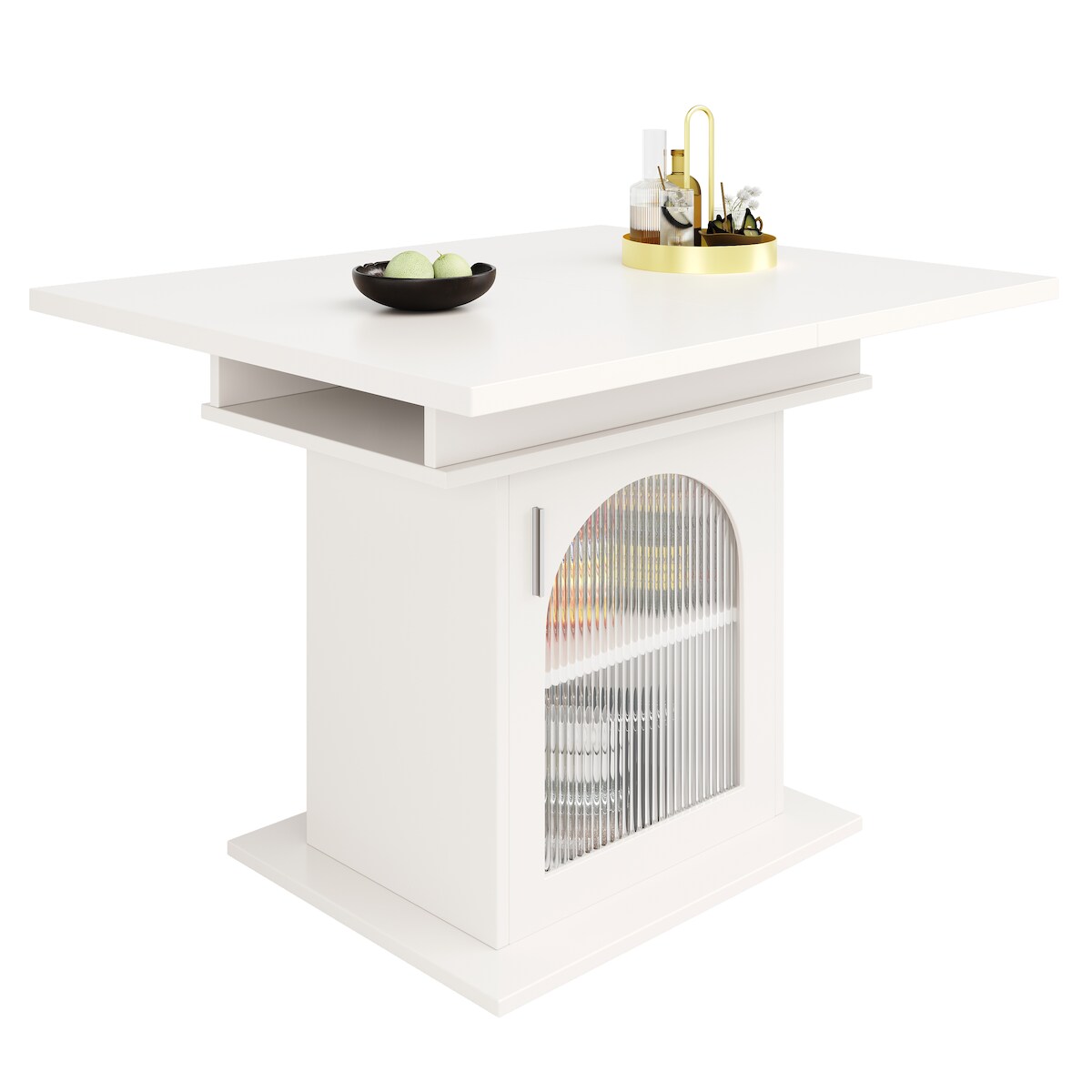 STILVORA Ausziehbarer Esstisch 140x80x76 Weiß mit Regenbogenglas Türen, 3 Ablagen und verstellbaren Böden, platzsparender Teleskoptisch aus MDF