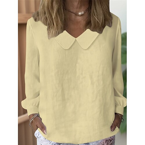 Per donna Top estivi Blusa Top Eleganti Arricciato Patchwork Tasca Tinta unica Semplice Elegante Vintage Signore Manica 3/4 Colletto a Camicia Top Regolari Quotidiano Lavoro Uscire Blu Giallo Viola