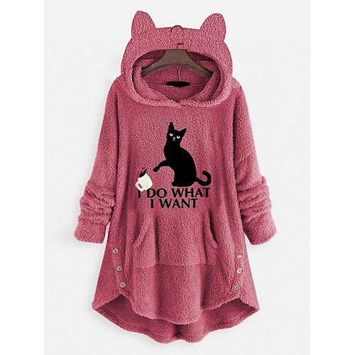 Per donna Felpa con cappuccio Gatto Casual Manica Lunga Con Cappuccio Top lunghi Streetwear Abbigliamento Quotidiano Casuale Rosa Vino Rosa scuro Blu Grigio Autunno Inverno