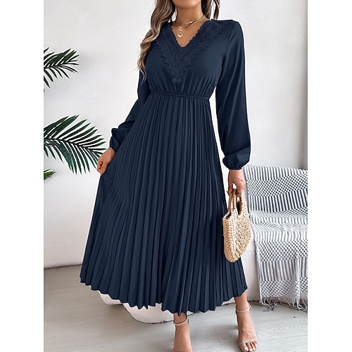 Per donna Abito maxi Abito a trapezio Casual Quotidiano Vestibilità regolare Semplice Manica Lunga Scollo a V Vino Blu marino Marrone chiaro Blu Primavera Autunno Inverno