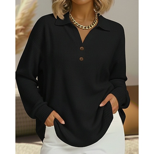 Per donna Blusa Semplice Elegante Manica Lunga Scollo a V Top Regolari Quotidiano Ferie Uscire Patchwork Bottoni Nero Bianco Vino Arancione Autunno