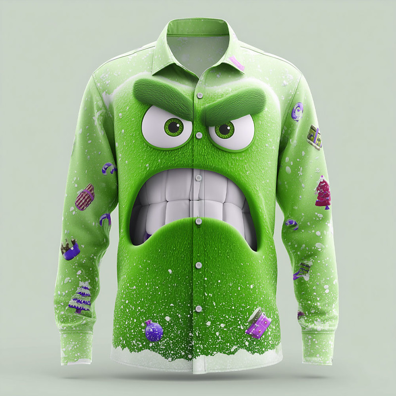 Christmas Men's 3D Cartoon Smile Face Christmas Gift Shirt Button Up Shirt Long Sleeve Funny Outdoor Holiday Spring Fall Turndown 3D Print Collared Shirts Red Blue Purple Green