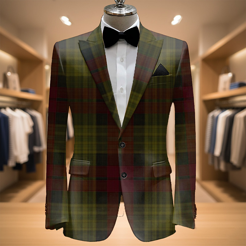 Men's Plaid Blazer Jacket Coat Fashion Comfortable Breathable Artistic Casual Daily Party Evening Wear Pocket 3D Print Buttons All Seasons Notch Long Sleeve Blue Purple Green