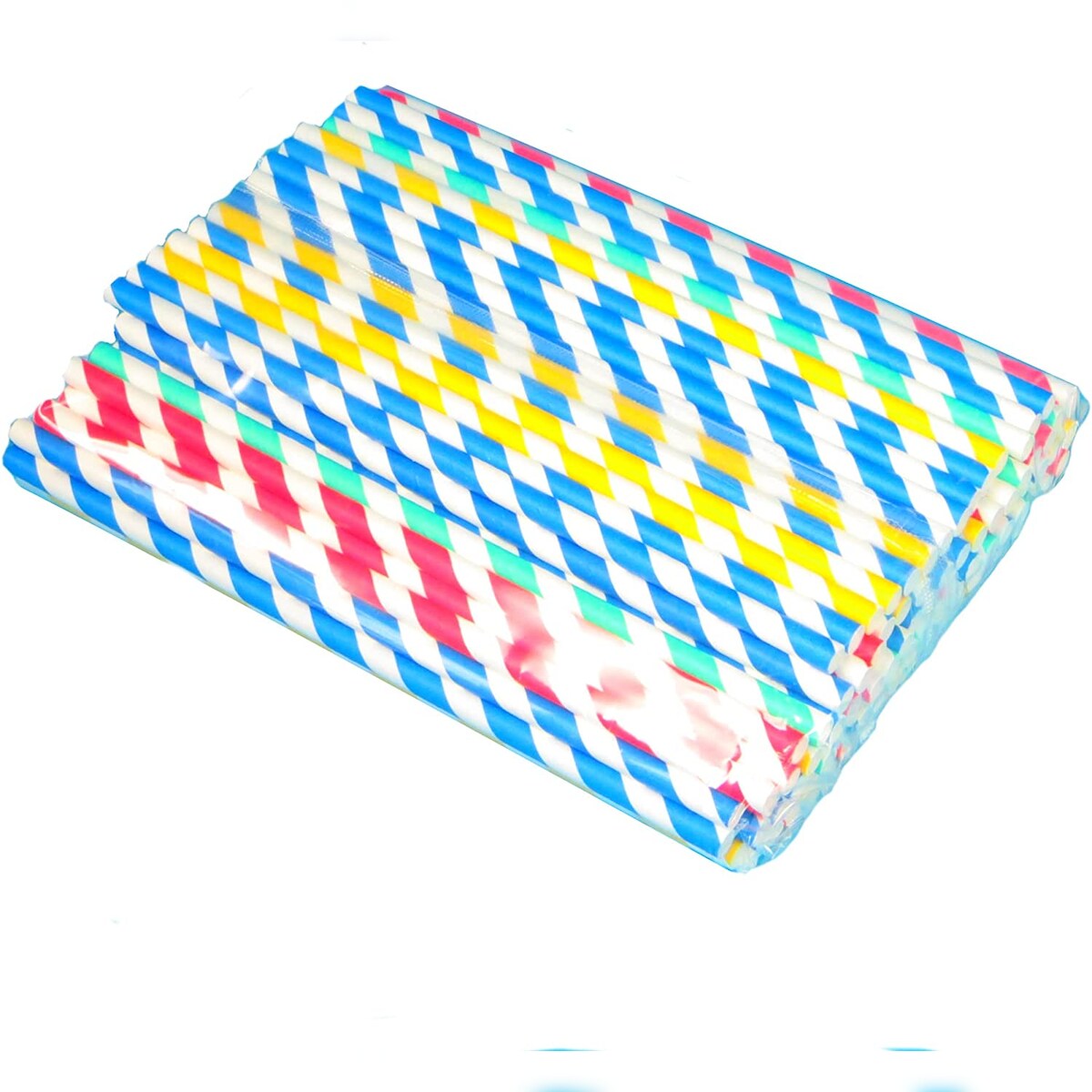 150 Papiertrinkhalme Jumbo 8mm Durchmesser 23cm lang farbig gestreift bunt gemischt