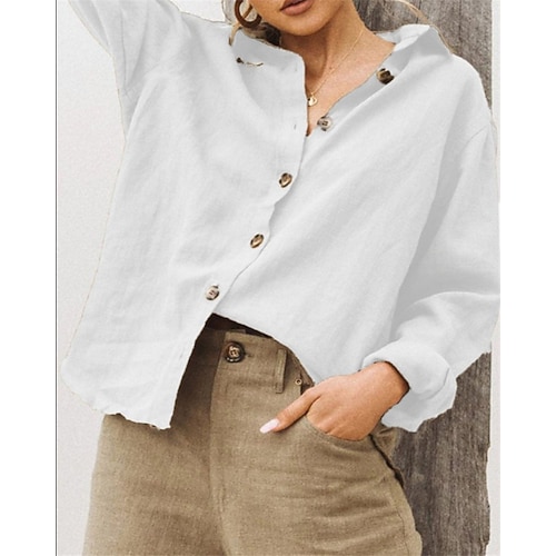 Per donna Camicia Camicie di cotone e lino Blusa con texture Blusa Semplice Moderno Casual Manica Lunga Scollo a V Top Regolari Quotidiano Ferie Uscire Bottoni Nero Bianco Rosa Vino Verde militare