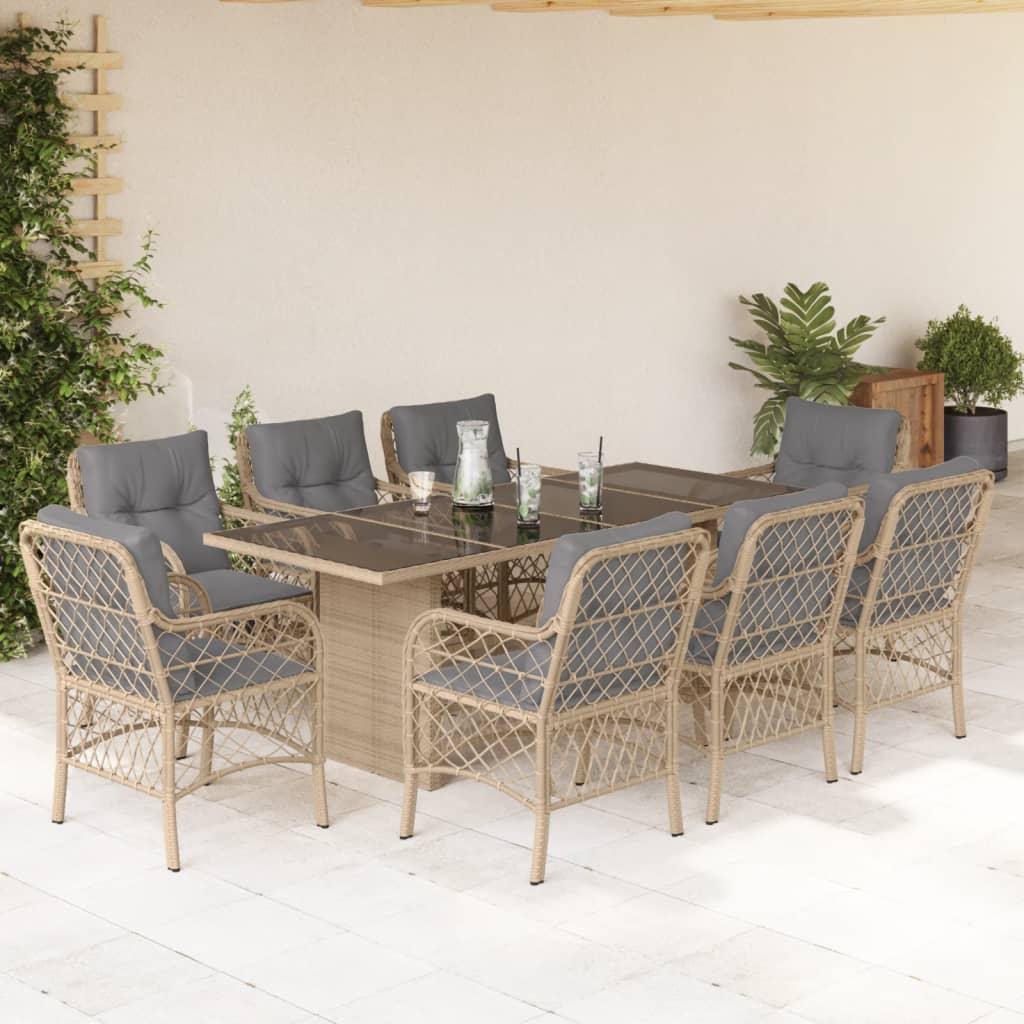 Spisebordssæt til haven 3 dele med hynder polyrattan og glas