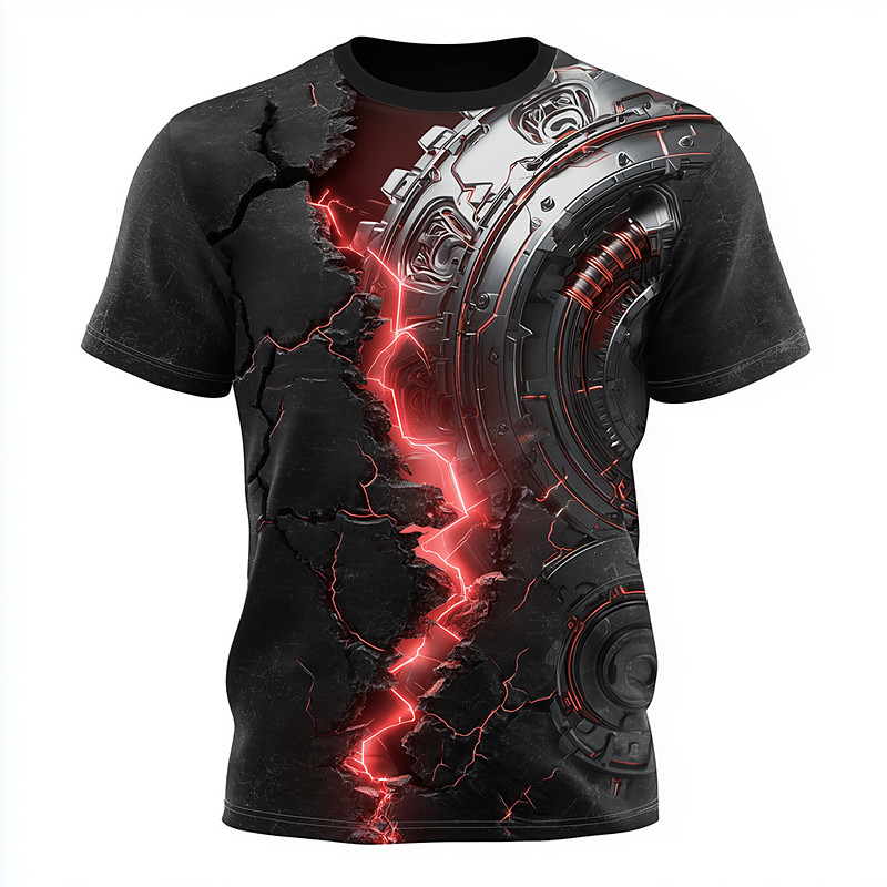 Men's Optical Illusion 3D Machine T Shirt Short Sleeve T shirt 3D Print Crew Neck Shirt Exaggerated Designer Party Daily Holiday Black 1 Black 2 Summer Spring All Seasons Clothing Apparel S M L XL