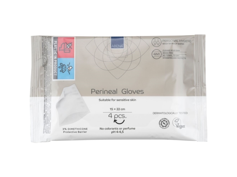 Perinealhandske, ABENA, halv-fold, 22x15cm, uden farve og parfume, med 3% Dimethicone, 4 stk.