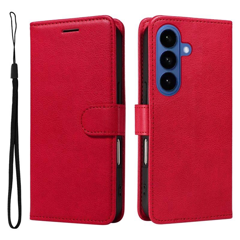 Samsung Galaxy S26 Plus Plånboksfodral Konstläder Med Rem Ställ - Röd