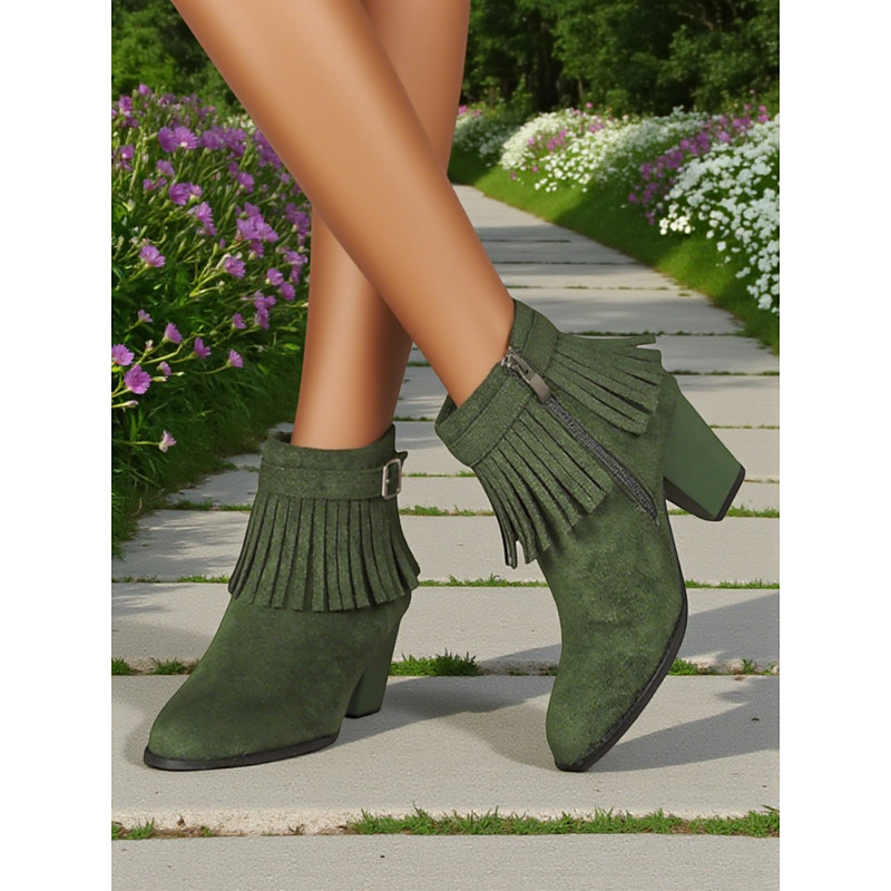 Women's Faux Suede Fringe Ankle Boots with Block Heels – Western Style for Garden Parties, Farm Festivals and Autumn Casual Wear