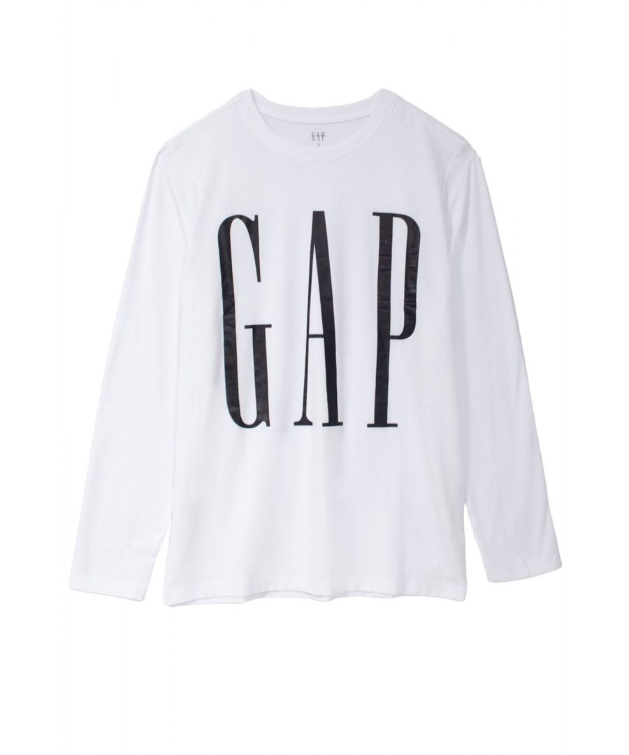 Gap Mens Long Sleeve T-shirt Logo Front - White Cotton - Size Medium | Gap Sale | Discount Designer Brands