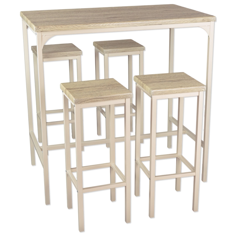 Set aus rechteckigem STEHTISCH 110x66xH110cm und 4 HOCKERN Beige Eiche Mod. RICCIONE von Yelloo