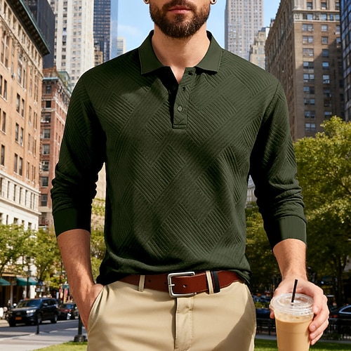 Per uomo Maglia da golf Polo da Golf Lavoro Casuale Bavero Manica Lunga Essenziale Moderno Semplice Jacquard Bottoni Primavera Autunno Vestibilità regolare Nero Blu marino Cachi Verde militare Grigio