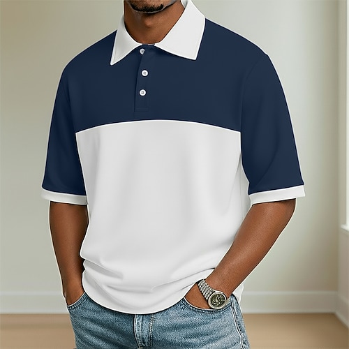 Per uomo Polo Maglia da golf Casuale Streetwear Bavero Manica Corta Essenziale Moderno Semplice Blocco di colore Bottoni Estate Primavera Vestibilità regolare Blu Blu marino Verde Grigio Polo