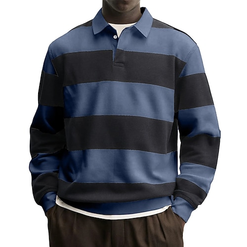 Per uomo Polo Maglia da golf Casuale Streetwear Bavero Manica Lunga Essenziale Moderno Strisce orizzontali Bottoni Primavera Autunno Vestibilità regolare Blu Grigio Bianco Rosso Blu marino Viola Polo