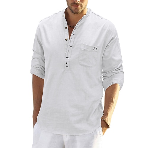 Per uomo Camicia Camicia di lino Camicia popover Camicia Estiva Abbigliamento da spiaggia Camicia con colletto alla coreana Semplice Casuale Quotidiano Nero Bianco Blu marino Verde Manica Lunga Collo