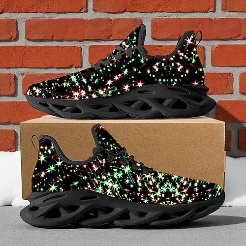 Sneakers da uomo con stampa luminosa natalizia: luci LED vivaci, comode scarpe sportive per le vacanze invernali, feste festive e riunioni all'aperto