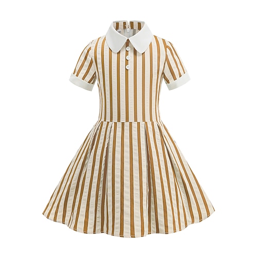 Elegante Classico Anni 1950 Midi Abito a Linea Abito Swing Vestito Svasato Maniche corte A righe Linea ad A Costume Ragazze Giornata universale dell'infanzia Mascherata Vacanza Abbigliamento