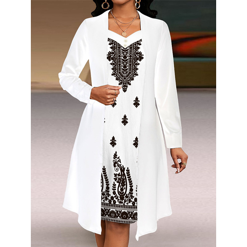 Women's Dress Set Casual Dress Print Dress Fashion Casual Floral Print Midi Dress 3/4 Length Sleeve V Neck Outdoor Vacation Black White Purple Summer Spring Loose Fit